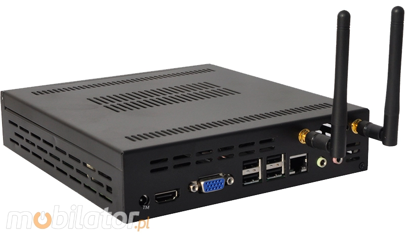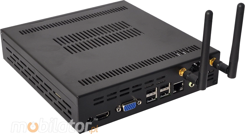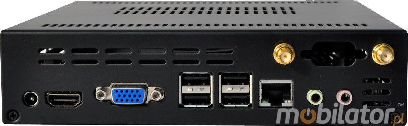 Integrated card - Intel RTL8111DL 100M and WiFi module allow connection to the network. The computer is equipped with: one LAN port, four USB 2.0 ports, one HDMI output, one VGA output, one way audio and one microphone input.