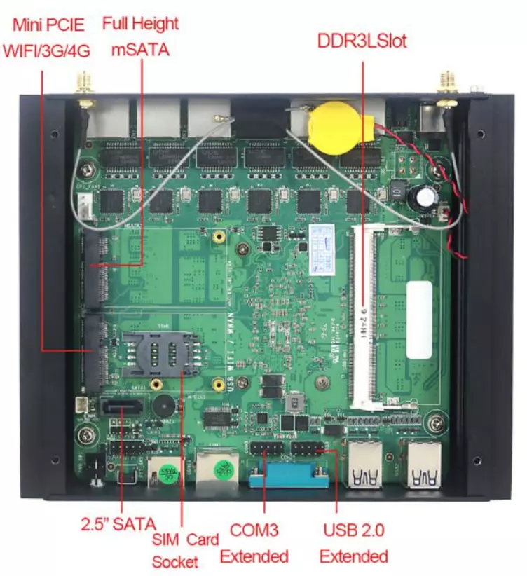 The MiniPC yBOX-X44-(6LAN, 2COM)i5-10210U has built-in six Intel 210AT network adapters that can work in a fast Gigabit Ethernet network.