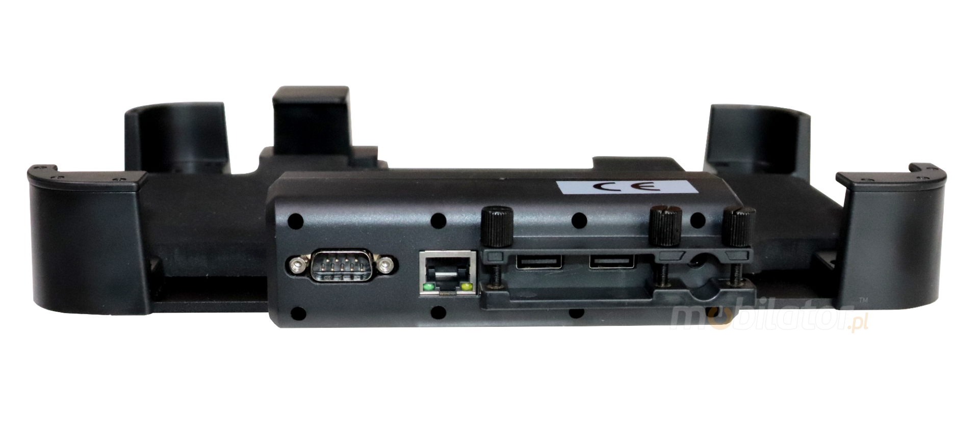 It is possible to use four different inputs/outputs in this holder: 1x RS232, 1x RJ-45 and 2x USB 2.0 which are working after plugging DC.