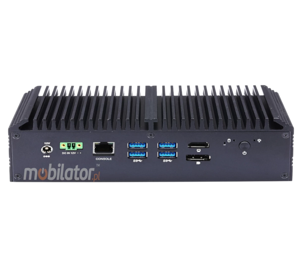 Small dimensions industrial computers excel in environments where dust, dirt and moisture predominate. They are ideal for applications requiring quiet operation. Small and reliable MiniPC use heat-pipe technology and aluminum fins for passive cooling. The robust mini Industrial Computer mBOX Q1012GE is a device designed for all industrial and non-continuous applications requiring continuous operation - 24 hours, 7 days a week.