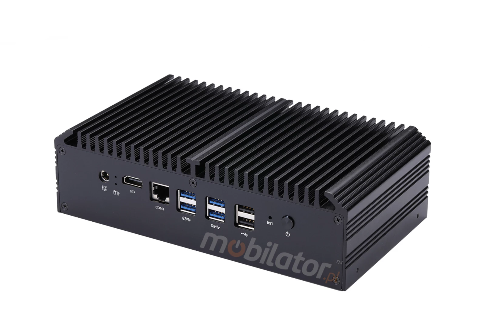 The passive cooling system used in the MiniPC mBOX Q838GE combined with the SSD disk makes this computer very resistant to various types of mechanical injuries. An additional advantage of industrial computers is a solid construction made of high quality aluminum and specially designed in such a way that in addition to high efficiency in heat dissipation, it can also resist any external damage.