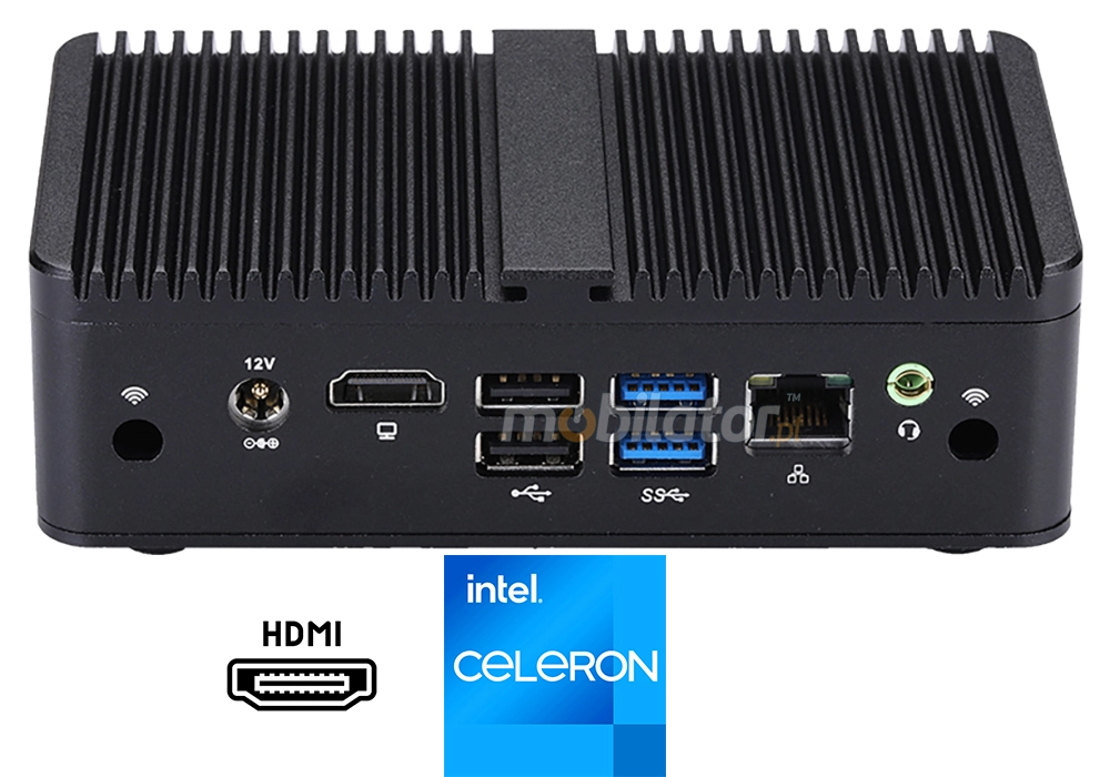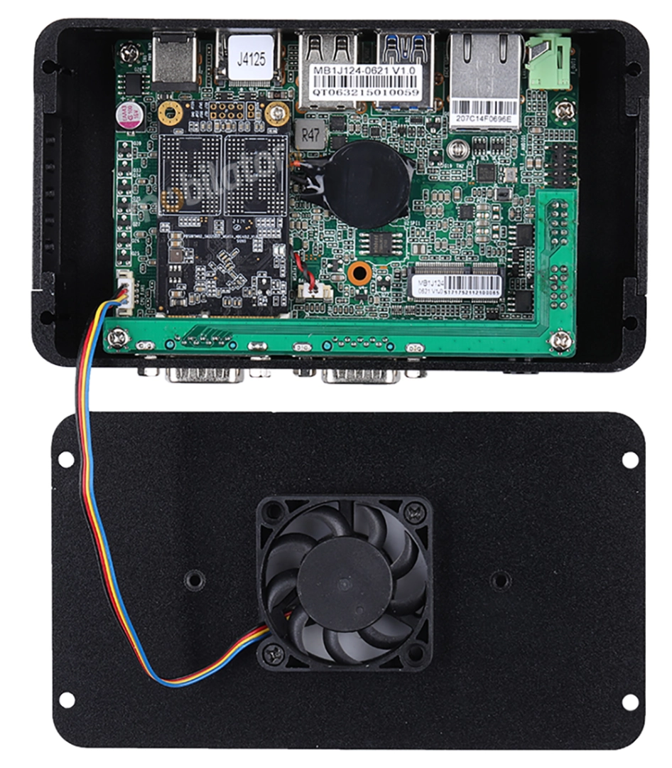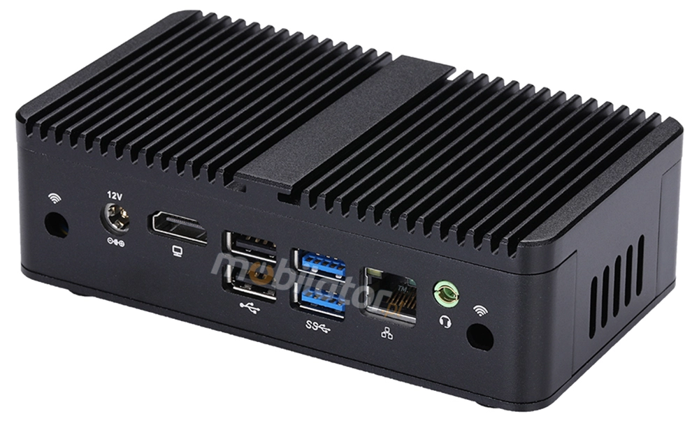 The industrial Mini PC uses a proven cooling system, based on solid elements, mainly heat sinks. However, pc has a small fan which function is redistribiuting heat evenly across the case, helping heat sinks keep the optimal temperature of the device.