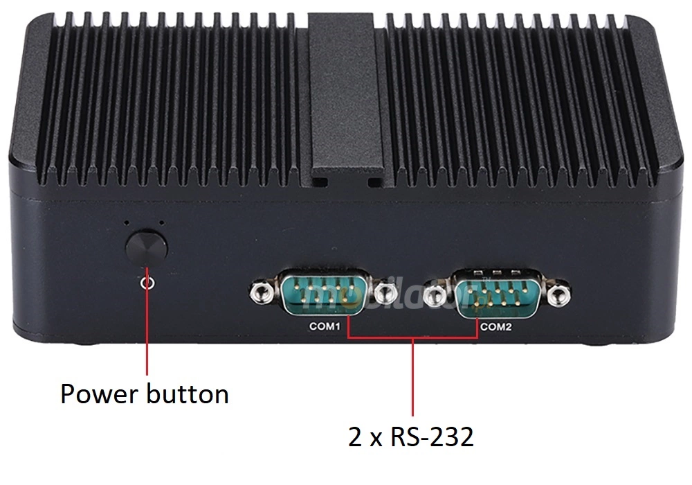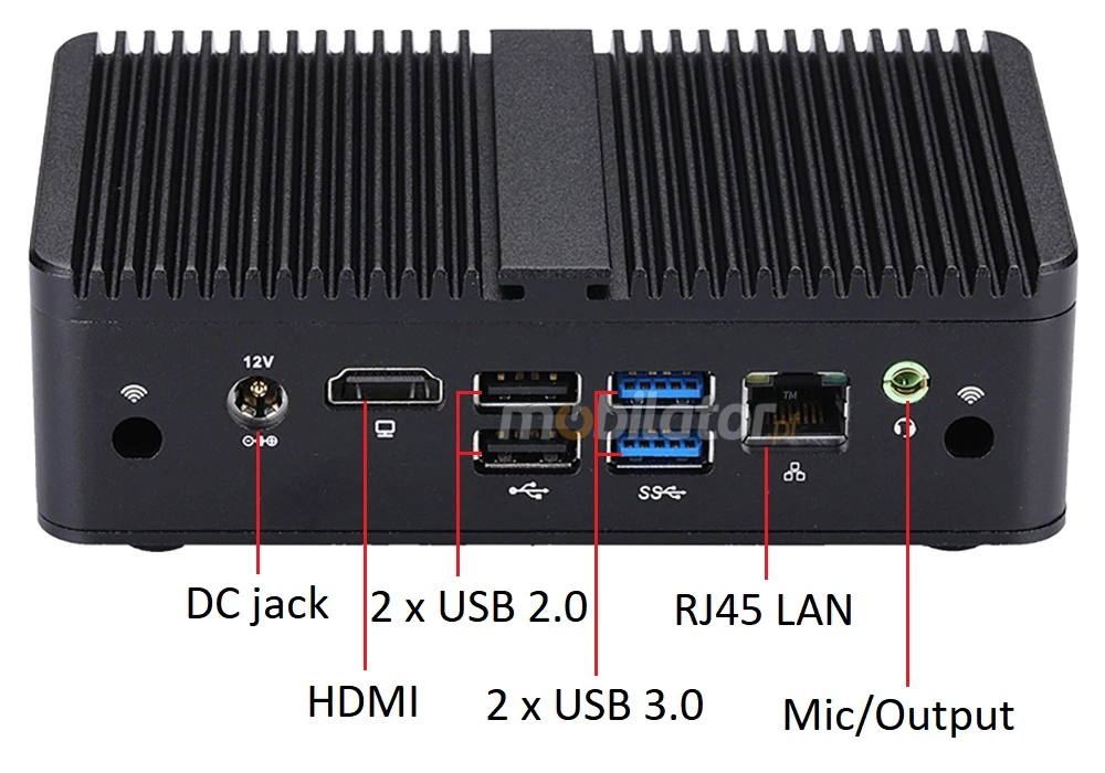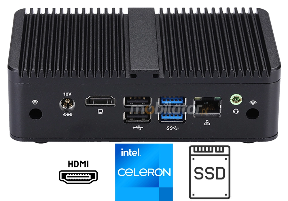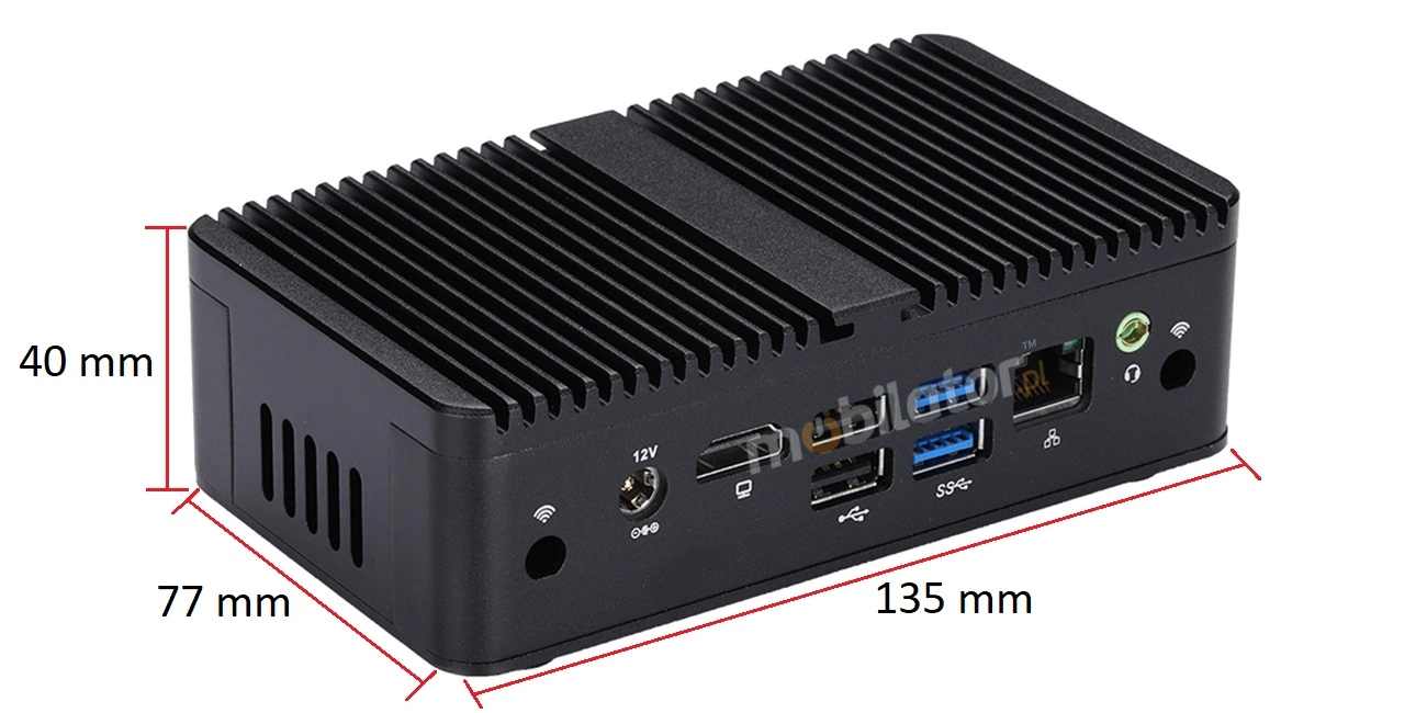 The industrial Mini PC uses a proven cooling system, based on solid elements, mainly heat sinks. However, pc has a small fan which function is redistribiuting heat evenly across the case, helping heat sinks keep the optimal temperature of the device.