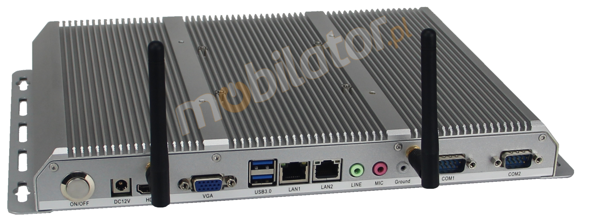 The industrial Mini PC uses a proven cooling system, based only on solid elements, mainly heat sinks. The system uses the phenomenon of metals passing thermal energy into the environment - there are no additional moving elements in the form of eg fans. This solution ensures noiseless operation, lower failure rate and greater protection against dust and other dirt while reducing the amount of energy consumed.