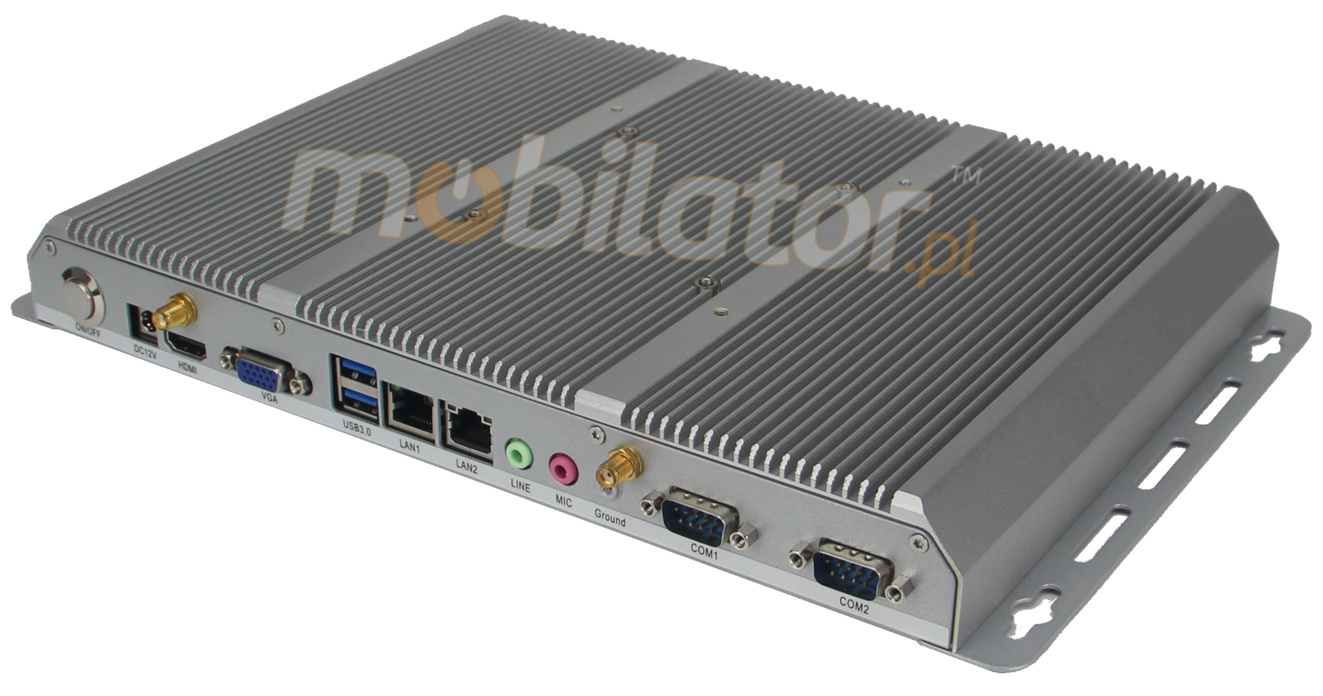 The industrial Mini PC uses a proven cooling system, based only on solid elements, mainly heat sinks. The system uses the phenomenon of metals passing thermal energy into the environment - there are no additional moving elements in the form of eg fans. This solution ensures noiseless operation, lower failure rate and greater protection against dust and other dirt while reducing the amount of energy consumed.