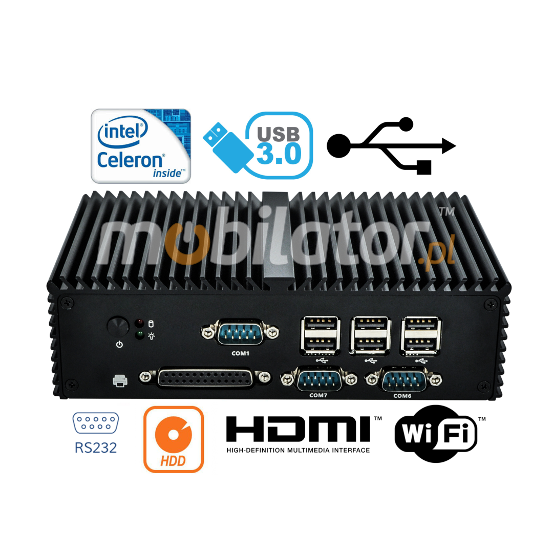 Small dimensions industrial computers excel in environments where dust, dirt and moisture predominate. They are ideal for applications requiring quiet operation. Small and reliable MiniPC use heat-pipe technology and aluminum fins for passive cooling. The robust mini Industrial Computer mBOX-Q190X is a device designed for all industrial and non-continuous applications requiring continuous operation - 24 hours, 7 days a week.
