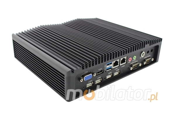 Integrated card - Intel RTL8111E 100M and WiFi module allow connection to the network. The computer is equipped with: two LAN ports, two COM ports (RS232), one VGA output, four USB 2.0 ports, two USB 3.0 ports, one HDMI output one way audio, one microphone input.