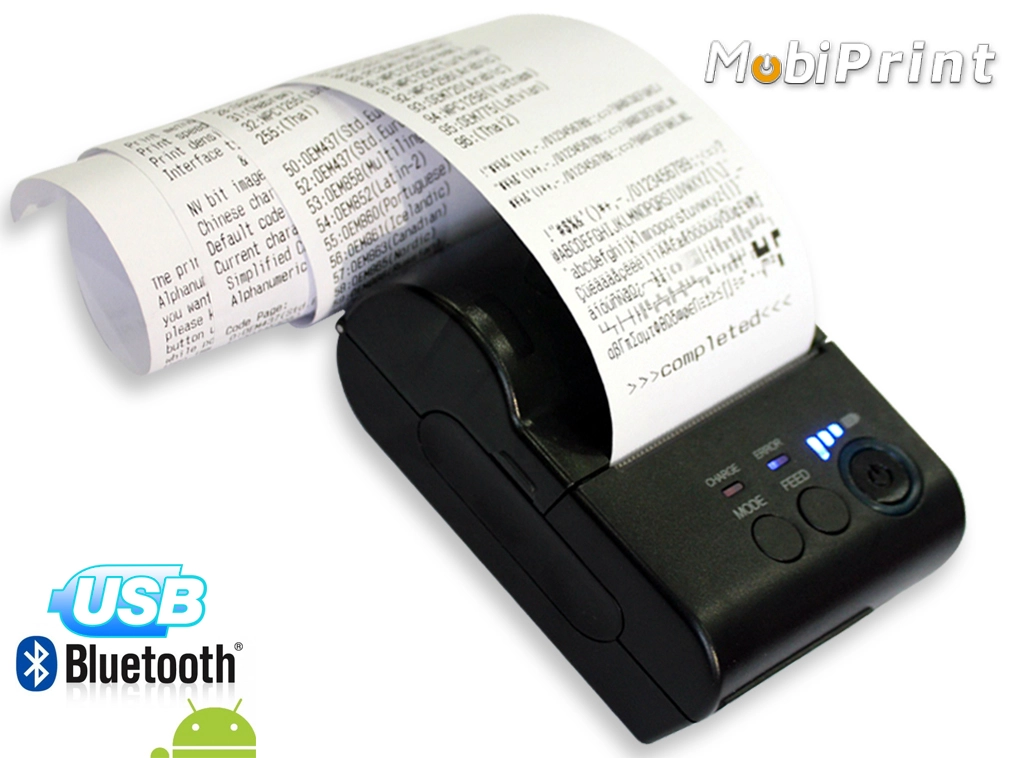 Portable Mobile Printer series MobiPrint is a lightweight device used to print receipts, invoices or labels in places where it is not possible to use large desktop printers. Depending on the client's needs - printers are available with different wireless interfaces (depending on model): Bluetooth and WiFi and wired USB and RS232.