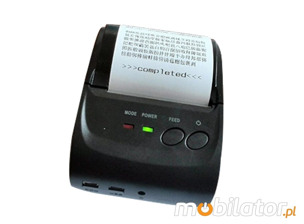 Easy loading paper roll "Drop-In & Print", high print quality, fast printing (up to 90mm/s), printing on thermal paper rolls of a width of 58mm makes the printer is applicable in a variety of mobile applications. The printer also are distinguished front panel, on which are placed the LEDs to indicate battery charge status, current or confirm the connection to the proper devices (smatphone, tablet, desktop computer, etc.). This multiplicity of functions makes the printer is user-friendly and ideal for field use thanks to the Bluetooth module. The printer is easy to use, among other things due to the use of very high-quality mechanism for easy paper loading. The printer is operating in a wide range of temperatures and humidity. The small dimensions allow you to use the printer in a confined work area, providing high-quality prints.