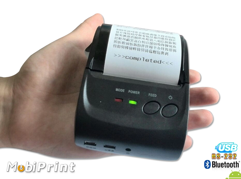 Portable Mobile Printer series MobiPrint is a lightweight device used to print receipts, invoices or labels in places where it is not possible to use large desktop printers. Depending on the client's needs - printers are available with different wireless interfaces (depending on model): Bluetooth and WiFi and wired USB and RS232.