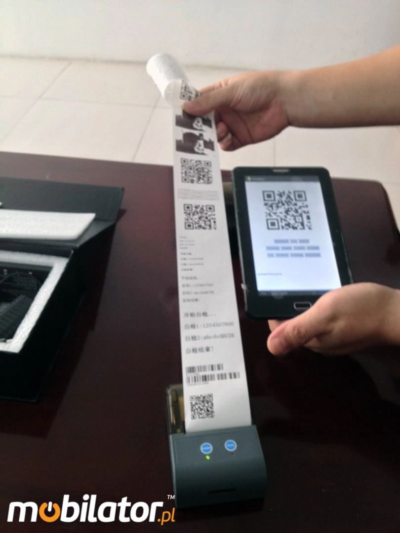 Easy loading paper roll "Drop-In & Print", high print quality, fast printing (up to 60mm/s), printing on thermal paper rolls of a width of 58mm makes the printer is applicable in a variety of mobile applications. Mini printer also: front panel, on which there are two LEDs, confirm the connection of an external device. (smatphone, tablet, desktop computer, etc.). This multiplicity of functions makes the printer is user-friendly and ideal for field use thanks to the Bluetooth module. The printer is easy to use, among other things due to the use of very high-quality mechanism for easy paper loading. The printer is operating in a wide range of temperatures and humidity. The small dimensions allow you to use the printer in a confined work area, providing high-quality prints.