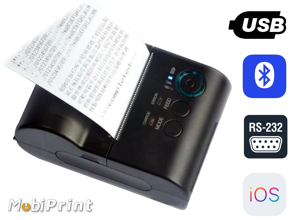 Portable Mobile Printer series MobiPrint is a lightweight device used to print receipts, invoices or labels in places where it is not possible to use large desktop printers. Depending on the client's needs - printers are available with different wireless interfaces (depending on model): Bluetooth and WiFi and wired USB and RS232.