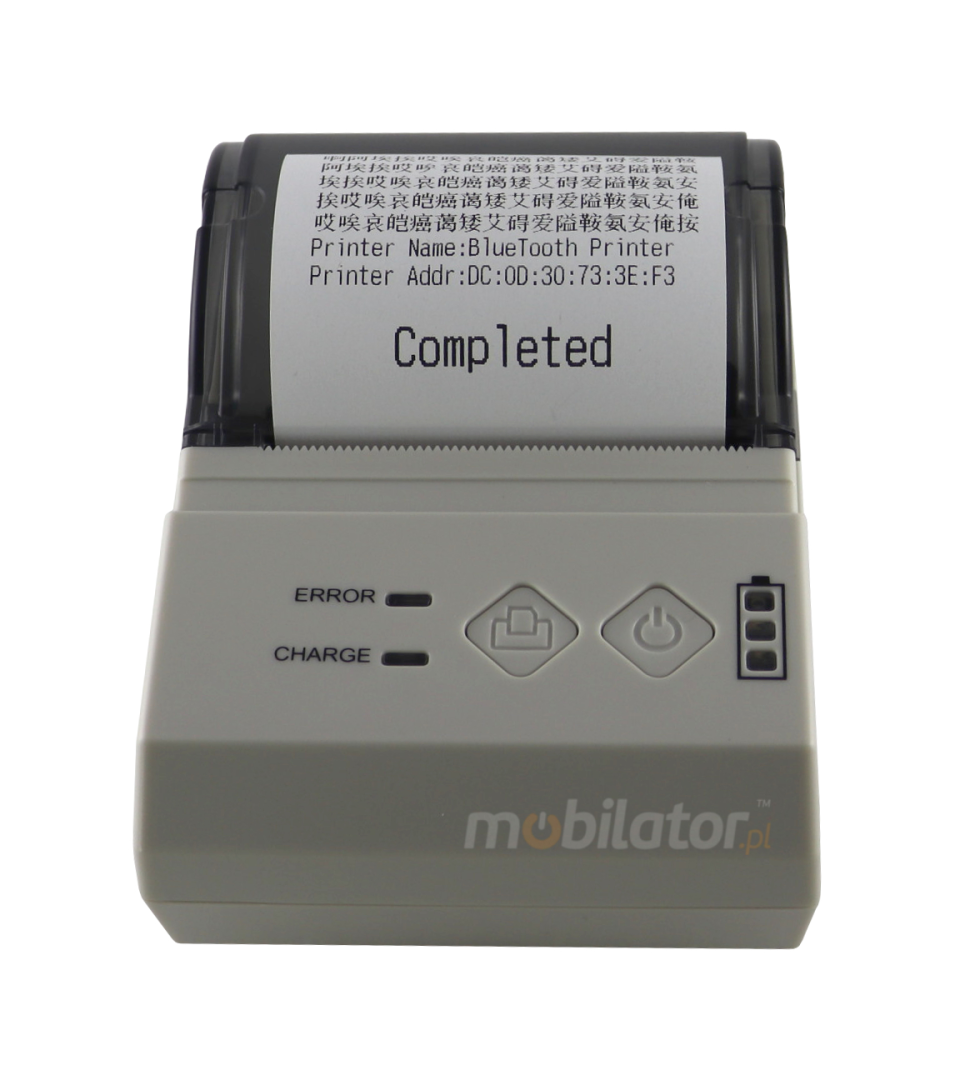 Easy loading paper roll "Drop-In & Print", high quality printing, fast printing (up to 100 mm / s), printing on rolls of thermal paper with a width of 58mm makes the printer is used in various applications mobilnych. Mini printer stand also: front panel, on which is placed the display indicating the battery status of the Act, confirm the connection of an external device (smartphone, tablet, PC).This multiplicity of functions makes the printer easy to use and ideal for field work through a Bluetooth module. The printer is easy to use, among other things due to the use of very high-quality mechanism for easy paper loading. The printer is operating in a wide range of temperatures and humidity. The small dimensions allow you to use the printer in a confined work area, providing high-quality prints.