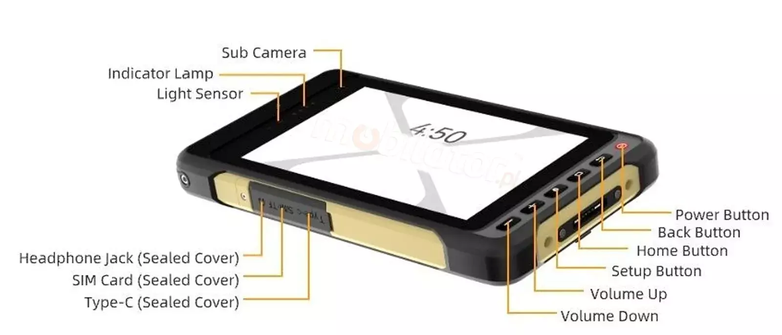The robust MobiPAD 770X industrial tablets guarantee reliability in extreme conditions thanks to their MIL-STD-810G certification and high IP67 sealing, making them resistant to drops, dust, and flooding. Equipped with a powerful 10,000 mAh battery, the devices allow for hours of uninterrupted operation without the need for frequent recharging. This rugged construction and efficient power supply make them ideal tools for demanding tasks in industry and on construction sites.