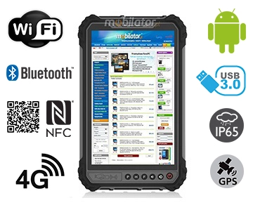 MobiPad 9TS-5A is a modern, waterproof industrial tablet designed for extreme applications. It has a specially designed, reinforced construction that meets the requirements of IP65, which confirms the protection of the device against dust and water.