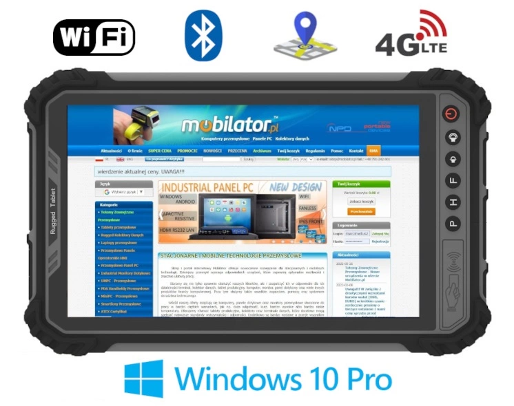 MobiPad M900-TS is a modern, waterproof industrial tablet designed for extreme applications. It has a specially designed, reinforced construction that meets the requirements of IP65, which confirms the protection of the device against dust and water. Tablet is also resistant to falls from a height of up to 1.2 m.