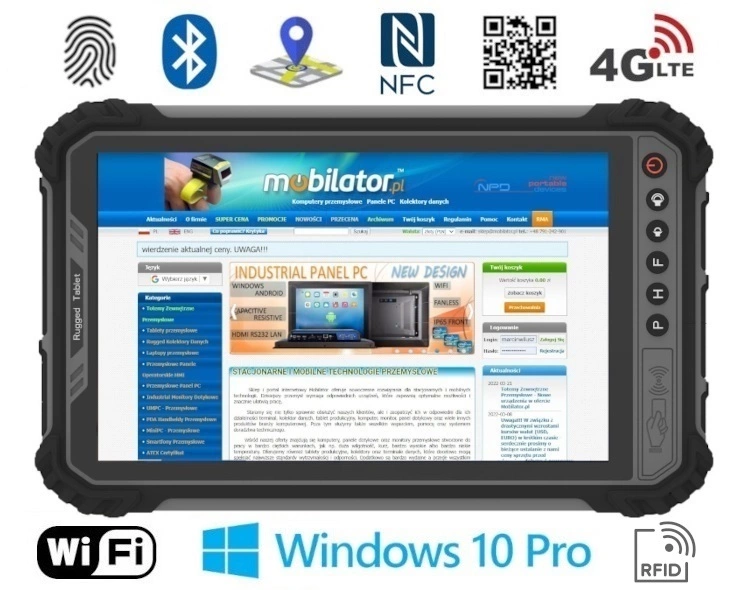 MobiPad M900-TS is a modern, waterproof industrial tablet designed for extreme applications. It has a specially designed, reinforced construction that meets the requirements of IP65, which confirms the protection of the device against dust and water. Tablet is also resistant to falls from a height of up to 1.2 m.