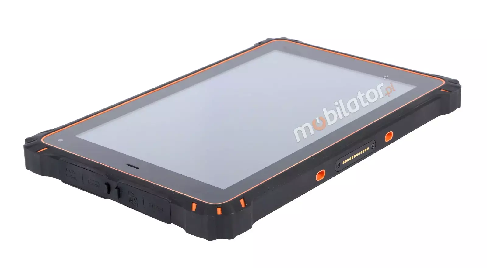 The extensive connectivity options include an RJ45 socket for stable wired connectivity and Type-C and mini HDMI ports for fast data and image transfer. An integrated Pogo Pin connector with a dedicated 5V/3A DC input allows for reliable docking and charging in harsh environments without using USB ports. Micro SIM and TF card support, combined with dual speakers and a microphone, ensures complete mobility and efficient communication in the field. The entire design, equipped with a traditional jack connector, guarantees the versatility necessary for professional applications in logistics and industry.