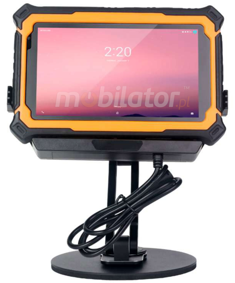 The dedicated MobiPad Tex17 tablet desktop charging bracket is the perfect solution for comfortable and secure use of an industrial tablet in the office, at a sales counter, or at a checkout. Equipped with a built-in power cable, this mount provides a stable and secure device mount while allowing for continuous charging during use. Made of durable ABS+PC plastic, the mount guarantees durability and long service life. It is VESA-compatible, ensuring broad compatibility with various mounts and mounts. The 1-meter power cable allows for convenient tablet positioning in various locations and distances from a power outlet.