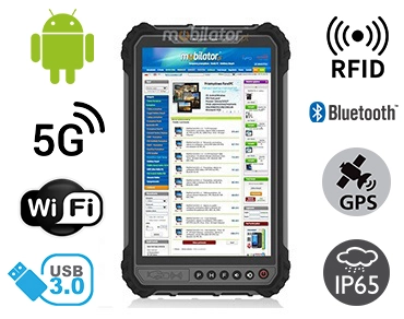 MobiPad TS9T is a modern, waterproof industrial tablet designed for extreme applications. It has a specially designed, reinforced construction that meets the requirements of IP65, which confirms the protection of the device against dust and water.