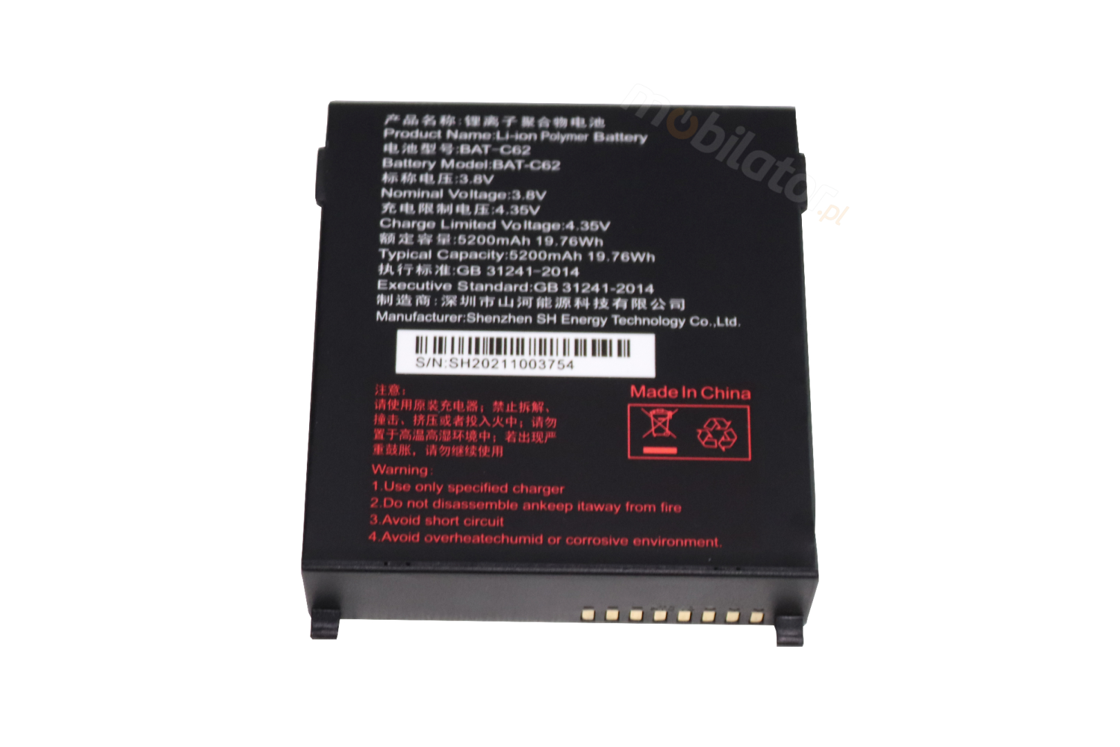 | Battery | 5200mAh, 3.8V |