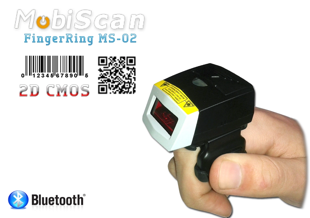 MobiScan FingerRing MS02 Bluetooth is small size and powerful new generation barcode scanner.It design for picking and sorting application ,enable your operator to free hand and improve operational efficiency in your warehouse,distribution center and retail store. You never need setting an item down to check paper work order or picking up handheld scanner. Operator even no need to put heavy pakage to the desktop for scan ,it will save more time and physical strength. Compare with common wired handheld scanner MS-02 wearable scanner can increase 15% -30% productivity !