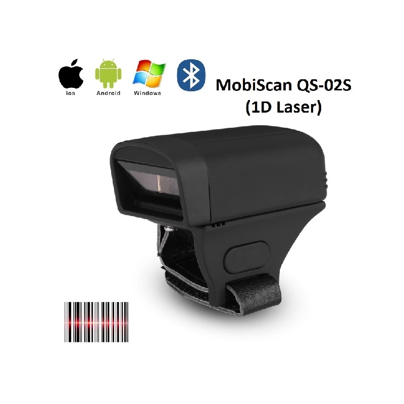 DescriptionMobiScan QS-02S is small size and powerful new generation barcode scanner.It design for picking and sorting application ,enable your operator to free hand and improve operational efficiency in your warehouse,distribution center and retail store. You never need setting an item down to check paper work order or picking up handheld scanner. Operator even no need to put heavy pakage to the desktop for scan ,it will save more time and physical strength. Compare with common wired handheld scanner, MobiScan QS-02S wearable scanner can increase 15% -30% productivity ! MobiScan QS-02S intelligent and ergonomic, handheld barcode reader will facilitate the work magazynierom, mobile and stationary retailers, pharmacists, couriers and logistics, quality controllers and inspectors of manufacturing processes and all those who need to work cataloging and storing the information read from the barcode . 1D Barcode Laser Scanner - MobiScan QS-02S through Bluetooth module (which provides reliable communication) is compatible with mobile devices, data collectors and computers running on different operating systemch (see the text "Communication" - below).