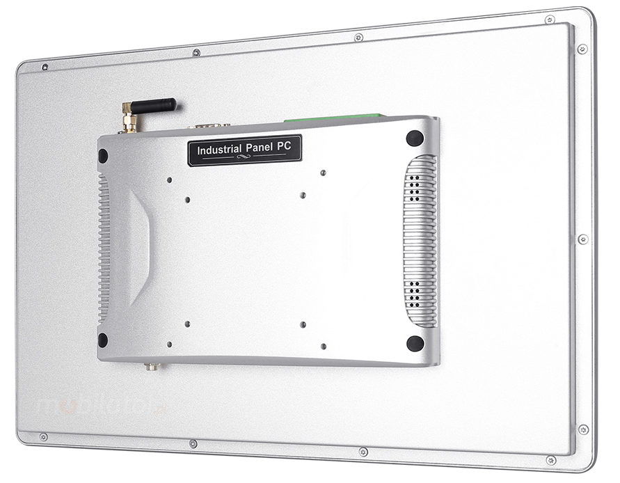 The panel PC has a good-quality metal casing. It is an important element of the cooling system thanks to specially designed cutouts that facilitate air circulation inside the housing. The overall design of the device is focused on simplicity and functionality, appreciated among professionals, as an accessory the panel can be equipped with passive cooling.