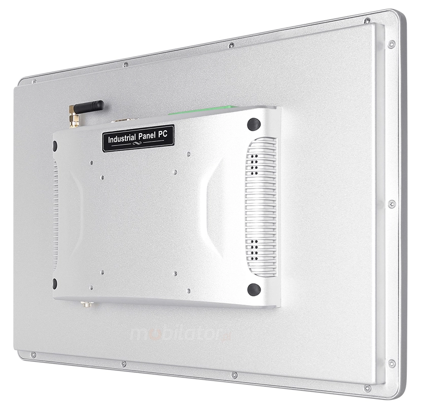 The panel PC has a good-quality metal casing. It is an important element of the cooling system thanks to specially designed cutouts that facilitate air circulation inside the housing. The overall design of the device is focused on simplicity and functionality, appreciated among professionals, as an accessory the panel can be equipped with passive cooling.