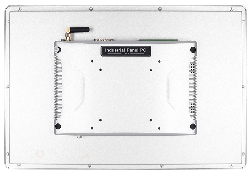 The panel PC has a good-quality metal casing. It is an important element of the cooling system thanks to specially designed cutouts that facilitate air circulation inside the housing. The overall design of the device is focused on simplicity and functionality, appreciated among professionals, as an accessory the panel can be equipped with passive cooling.