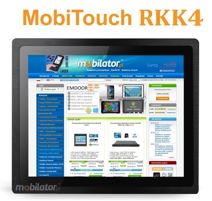 Amplified, waterproof industrial computer MobiTouch 215RKK4 has a water-resistant and scratch-proof 21.5" LED screen 1920x1080 resolution offers good image quality, and high brightness in the 250 cd/m² range gives better color saturation and contrast and allows significantly improved visibility even in the case of incident The display of the resistive type provides the user with a clear image and ease of use by touch.