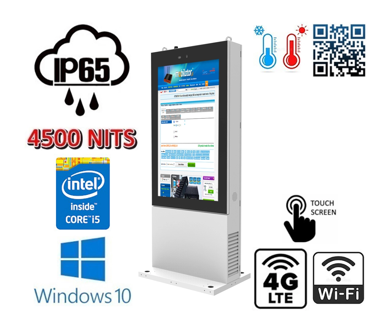 The panel housing with dimensions of 2130mm x 880mm x 230mm is made of the highest quality metal covered with a galvanic coating, which ensures a very high resistance of the device to mechanical damage and severe weather conditions, rain, fog, snow and frost. This model, weighing 130.0 kg, is ready for use at any time, even in difficult conditions such as heat or cold. Digital Singage Player - Windows 55 inch Advertising and information totem NoMobi Trex is a series of devices designed for applications requiring continuous operation - 24 hours a day, 7 days a week.