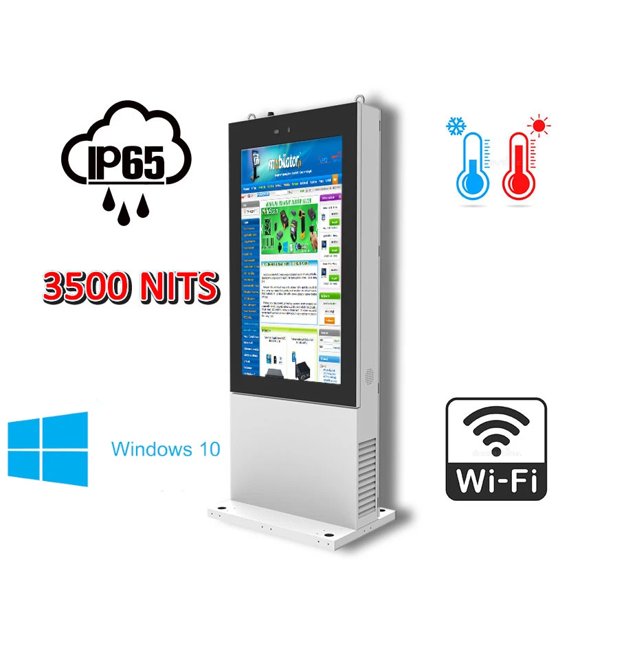 A heat exchanger is installed in the device to cool the device at high temperatures, so that the outdoor totem can function in heat and sun. The cooling system allows the display to work properly in summer and the ads will be visible. For example, if the device starts to heat up to 60 ° C is a mounted fan, by increasing the speed of rotation, the totem will cool down to a temperature below 50°C, thanks to which the device will be able to function properly.