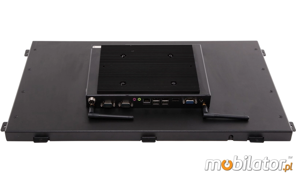 Connector: The integrated network card Intel RTL8111G 10/100/1000 Mbps LAN 2xRJ-45, WIFI allows you to connect the device to the network. The computer is equipped with: two LAN connector, three ports COM (RS232), one port COM (RS485), one VGA, one HDMI output, two USB 2.0 ports, one USB 3.0 port, one audio input, one input MIC, connector DC-in.
