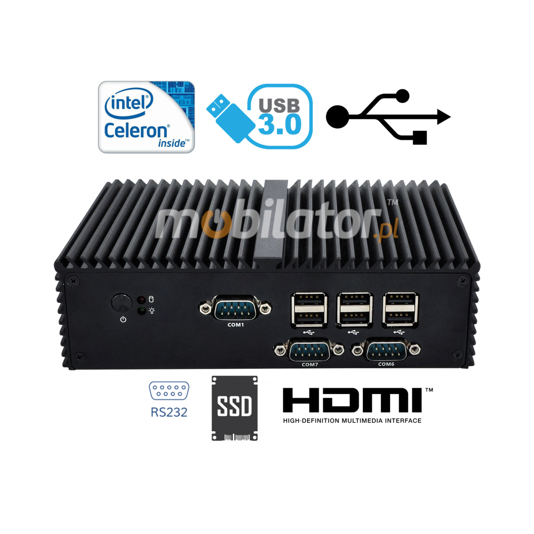 Detailed device specification is available in the "Technical data" tab.The industrial Mini PC uses a proven cooling system, based only on solid elements, mainly heat sinks. The system uses the phenomenon of metals passing thermal energy into the environment - there are no additional moving elements in the form of eg fans. This solution ensures noiseless operation, lower failure rate and greater protection against dust and other dirt while reducing the amount of energy consumed.