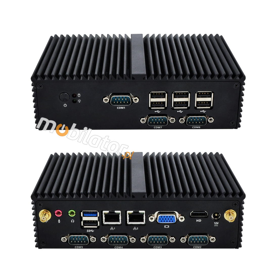 Small dimensions industrial computers excel in environments where dust, dirt and moisture predominate. They are ideal for applications requiring quiet operation. Small and reliable MiniPC use heat-pipe technology and aluminum fins for passive cooling. The robust mini Industrial Computer mBOX-Q190X is a device designed for all industrial and non-continuous applications requiring continuous operation - 24 hours, 7 days a week.