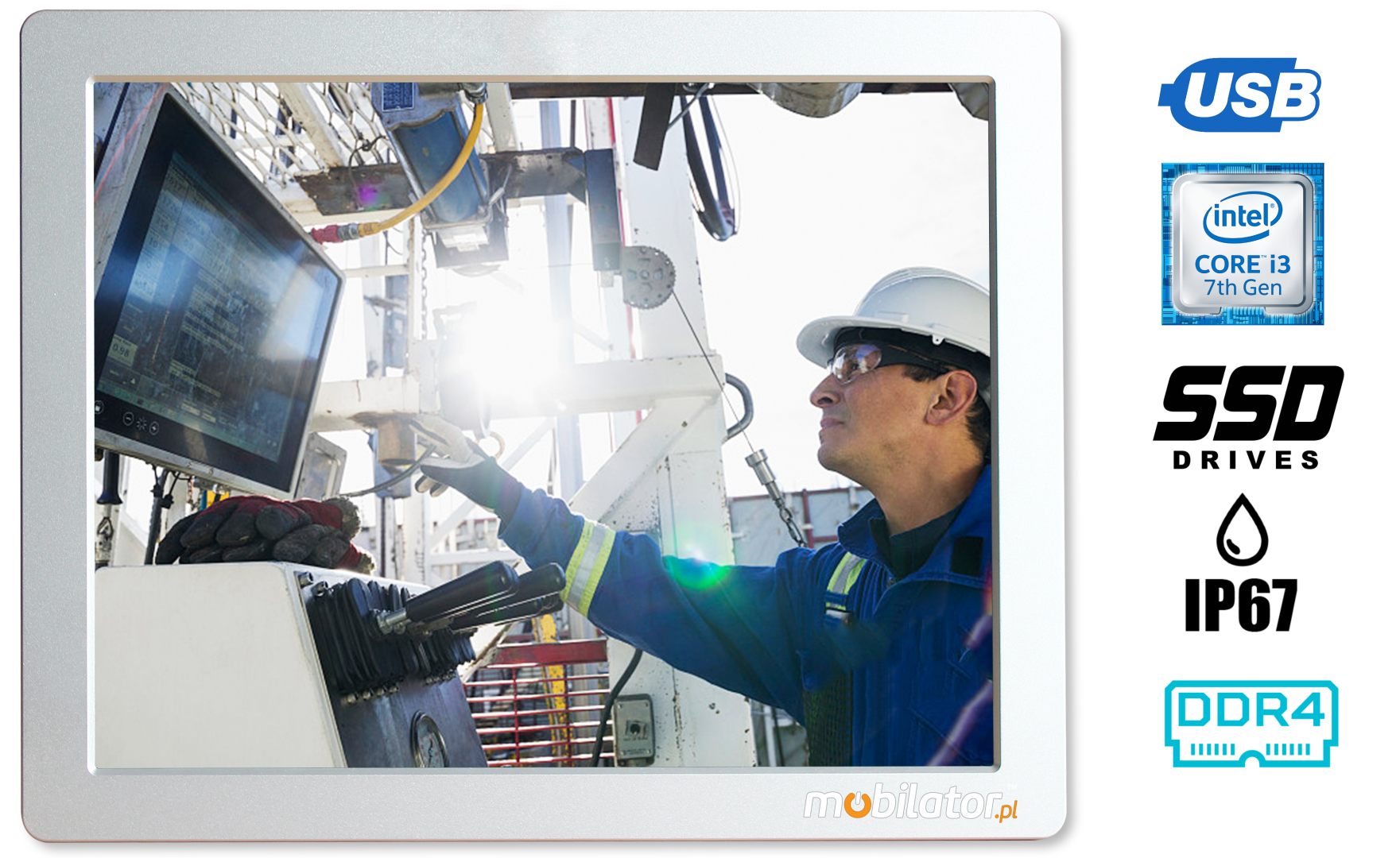 The dust-proof industrial PC panel uses an efficient and energy-saving Intel Corer i3 6100 processor. In its interior there are two cooperating cores enabling more efficient processing of many tasks at the same time. Shared cache memory in which a multi-level hierarchy is used is dynamically allocated to each processor core depending on the load. This reduces the average access time to the main memory. Improved graphics card technology allows you to enjoy movies at full resolution and HD quality