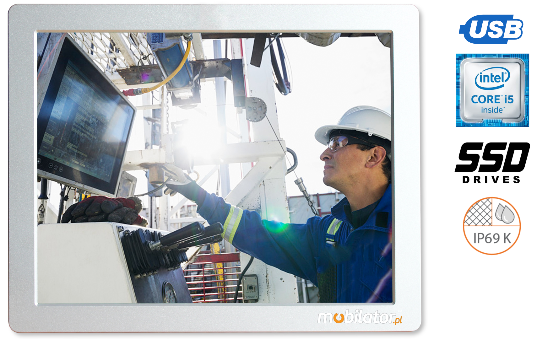 The dust-proof industrial PC panel uses an efficient and energy-saving Intel Corer i5 6200 processor. In its interior there are two cooperating cores enabling more efficient processing of many tasks at the same time. Shared cache memory in which a multi-level hierarchy is used is dynamically allocated to each processor core depending on the load. This reduces the average access time to the main memory. Improved graphics card technology allows you to enjoy movies at full resolution and HD quality