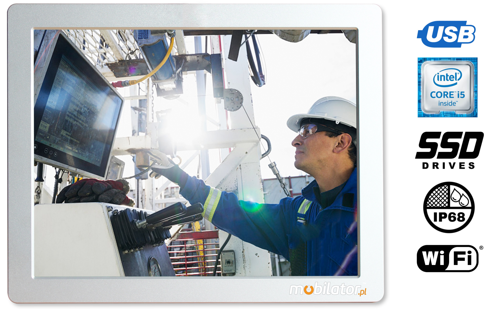 The dust-proof industrial PC panel uses an efficient and energy-saving Intel Corer i5 6200 processor. In its interior there are two cooperating cores enabling more efficient processing of many tasks at the same time. Shared cache memory in which a multi-level hierarchy is used is dynamically allocated to each processor core depending on the load. This reduces the average access time to the main memory. Improved graphics card technology allows you to enjoy movies at full resolution and HD quality
