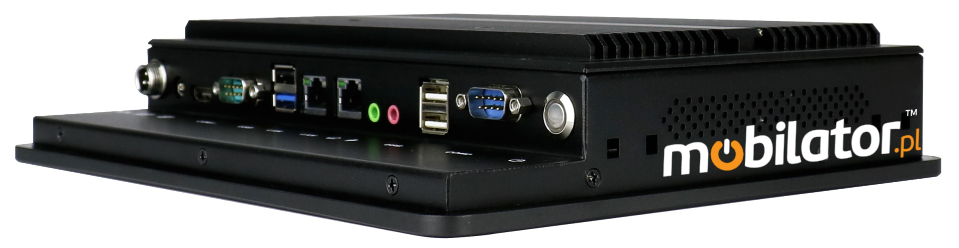 Panel PC has a high quality casing made from aluminum alloys. It is a very crucial component of cooling system thanks to openings allowing air flow inside casing, specially important in a passive system. Overall design concentrates on simplicity and functionality which are in high demand amongst professionals.