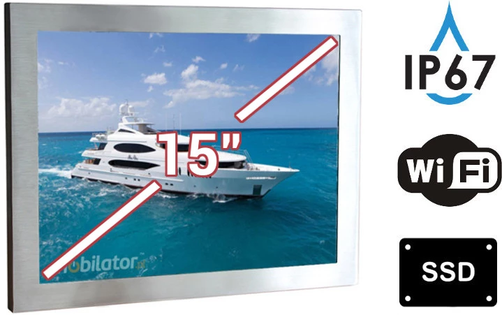 Amplified, waterproof industrial computer QBOX 15 has a water-resistant and scratch-proof 15" LED screen 1024x768 resolution offers good image quality, and high brightness in the 300 cd/m² range gives better color saturation and contrast and allows significantly improved visibility even in the case of incident The display of the resistive type provides the user with a clear image and ease of use by touch.