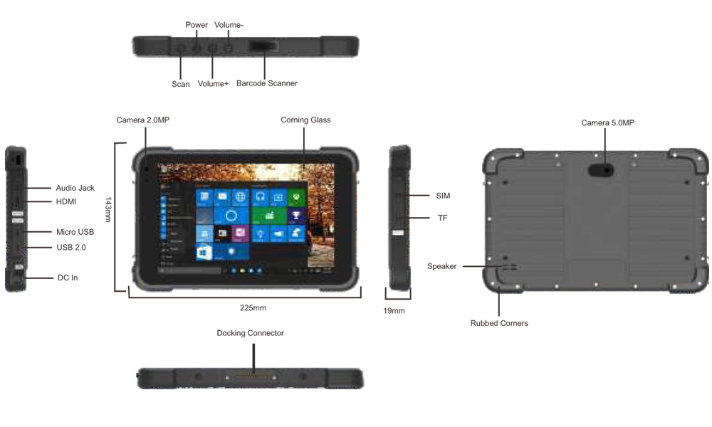 Industrial Data Terminal Emdoor EM-T86 is designed for resistance and convenience. The sleek and rugged 20.7mm thick design and stylish case will make the tablet very well suited for industrial use and more. The unique size has been carefully thought out to make the device more comfortable and ergonomic. The non-slip casing makes it safe and secure to hold it in your hand, and the rubber corners further protect your device against possible damage as a result of falls.