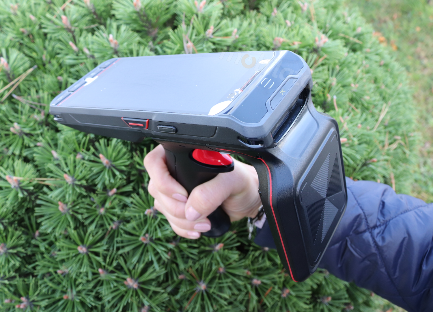 The pistol grip with which our data collector is equipped allows for long-term comfortable work and perfect precision during inventory taking.