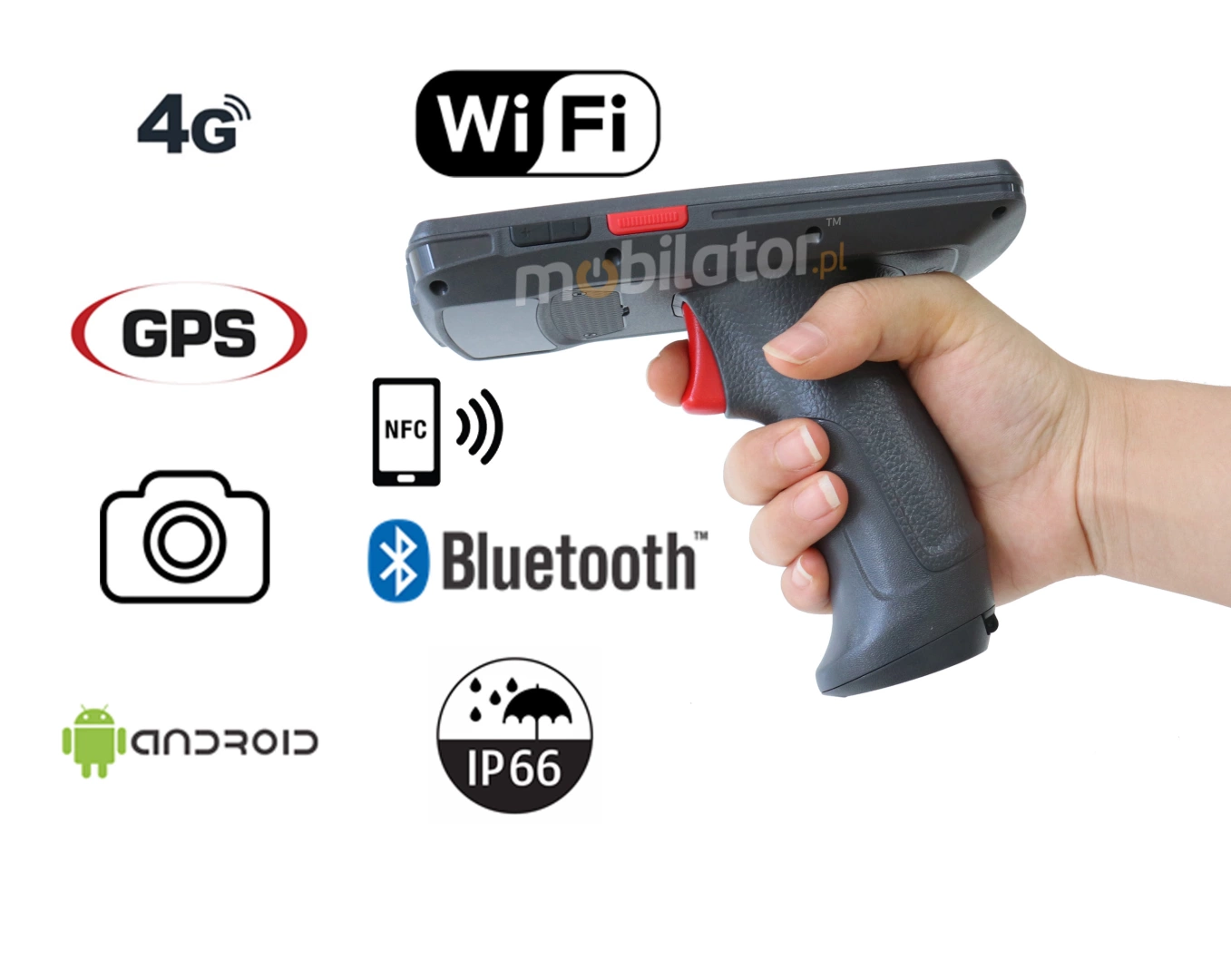 The pistol grip with which our data collector is equipped allows for long-term comfortable work and perfect precision during inventory taking.
