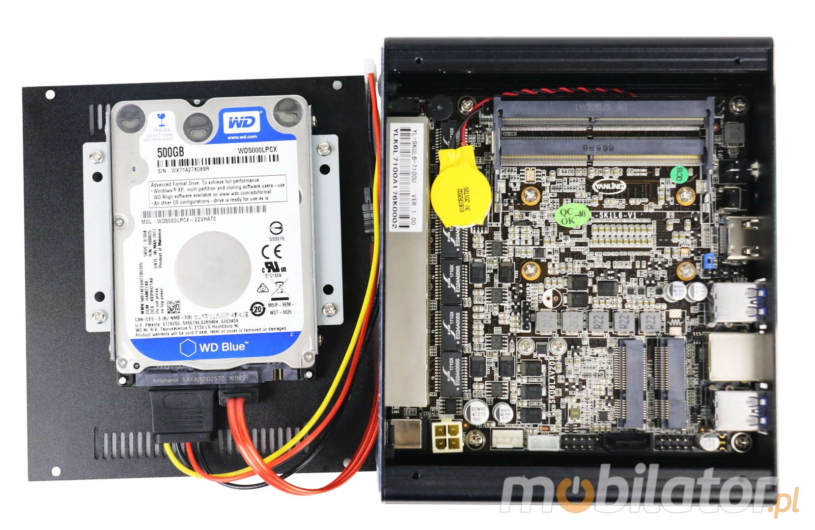 Detailed device specification is available in the "Technical data" tab.The industrial Mini PC uses a proven cooling system, based only on solid elements, mainly heat sinks. The system uses the phenomenon of metals passing thermal energy into the environment - there are no additional moving elements in the form of eg fans. This solution ensures noiseless operation, lower failure rate and greater protection against dust and other dirt while reducing the amount of energy consumed.