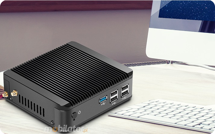 The industrial Mini PC uses a proven cooling system, based only on solid elements, mainly heat sinks. The system uses the phenomenon of metals passing thermal energy into the environment - there are no additional moving elements in the form of eg fans. This solution ensures noiseless operation, lower failure rate and greater protection against dust and other dirt while reducing the amount of energy consumed.