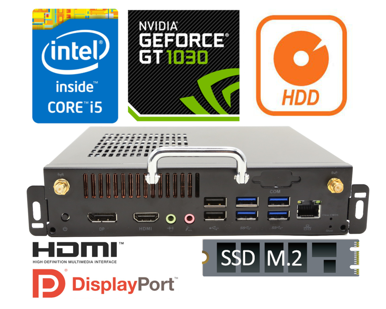 The industrial computer zBOX-PSO-1030 usues a very efficient GPU model from NVIDIA. On the motherboard there is a graphic card GT1030 with a memory capacity of 2GB and type GDDR5, which enables verry efficient processing of many precise tasks related to graphic processing of digital images in graphic programs such as: Adobe Photoshop, GIMP, CorelDraw, Inkscape or AutoCAD. The card`s memory uses a multi-level rendering hierarchy, it is dynamically allocated to the core graphics processor depending on the load.