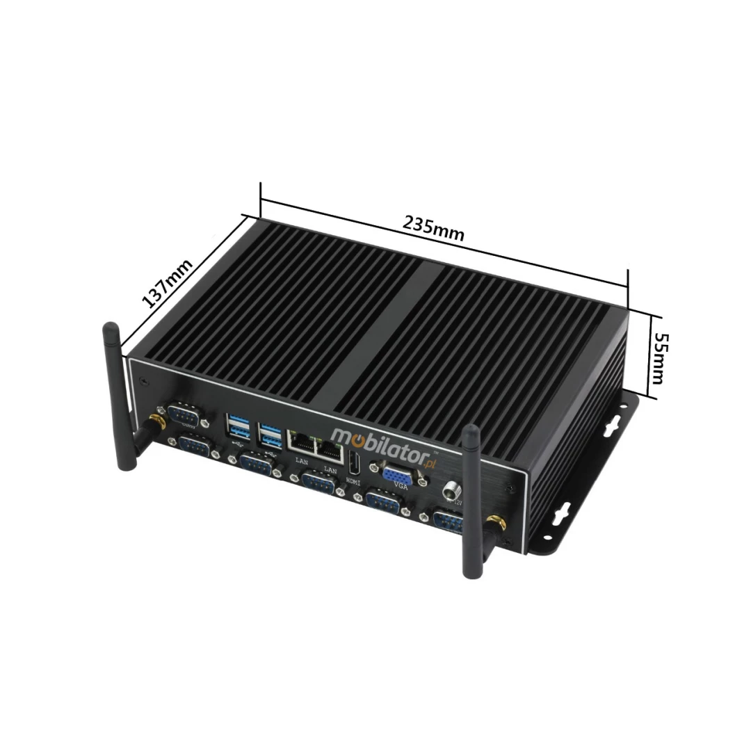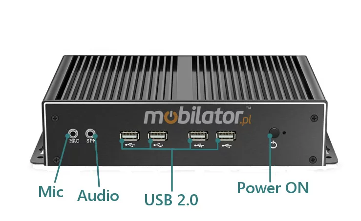 The industrial Mini PC uses a proven cooling system, based only on solid elements, mainly heat sinks. The system uses the phenomenon of metals passing thermal energy into the environment - there are no additional moving elements in the form of eg fans. This solution ensures noiseless operation, lower failure rate and greater protection against dust and other dirt while reducing the amount of energy consumed.