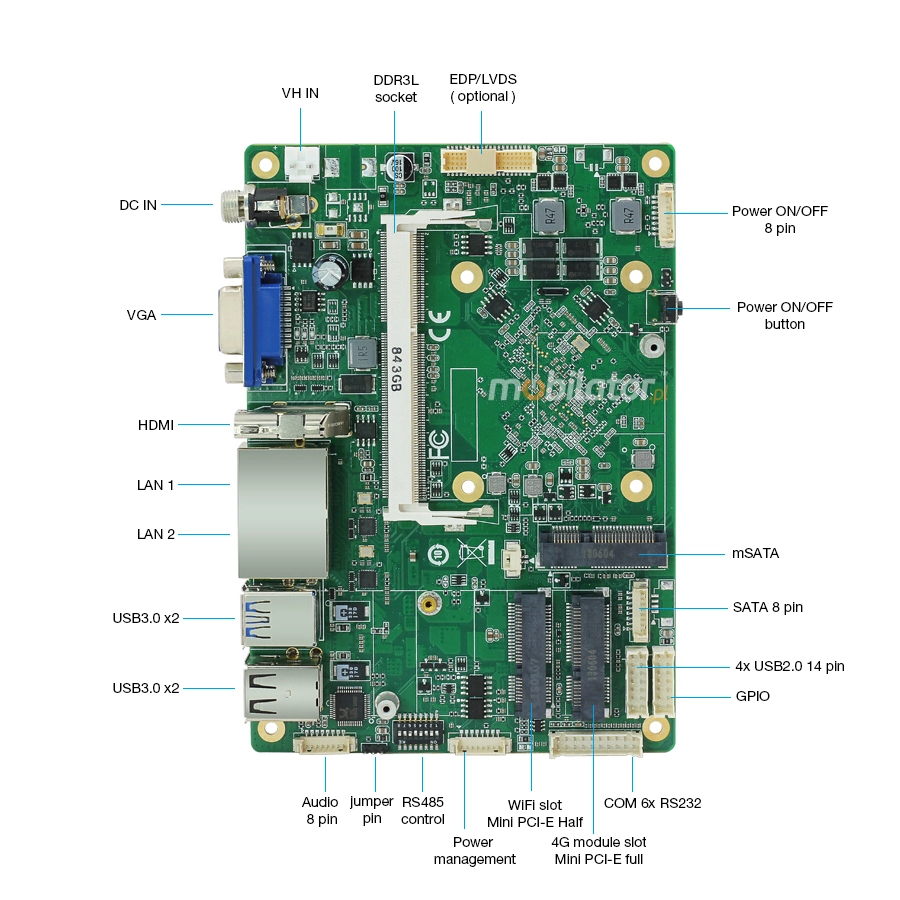 | Front panel | Power ON | 2x COM | 4x USB 3.0 | |