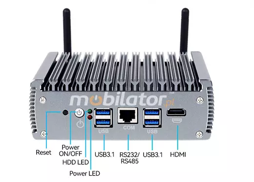 The industrial Mini PC uses a proven cooling system, based only on solid elements, mainly heat sinks. The system uses the phenomenon of metals passing thermal energy into the environment - there are no additional moving elements in the form of eg fans. This solution ensures noiseless operation, lower failure rate and greater protection against dust and other dirt while reducing the amount of energy consumed.